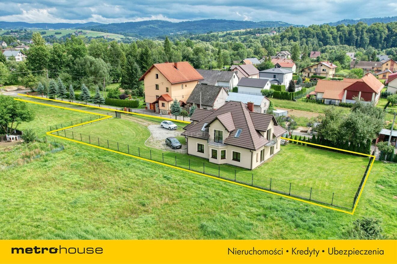 Dom z widokiem na góry w gminie Łękawica (powiat żywiecki, województwo śląskie).Pow. użytkowa: 216 m² (całkowita 261 m²), posadowiony na działce o pow. 1444 m².